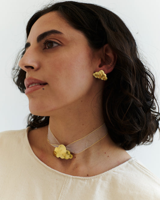 Cadena eslabones y flor de hibisco con nácar alpaca